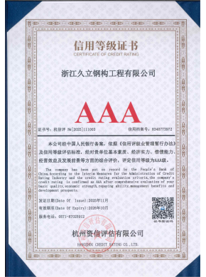浙江久立钢构工程有限公司,自2001年2月立足于中国经济腾飞的核心区域--长三角的湖州市,作为久立集团的全资子公司,本公司不仅荣获湖州市重合同守信用单位、高新技术企业、AAA 级信用企业等荣誉,更是中国钢结构协会和浙江建筑行业协会钢结构分会的重要团体会员,展示了我们在行业内的权威地位和卓越影响力。