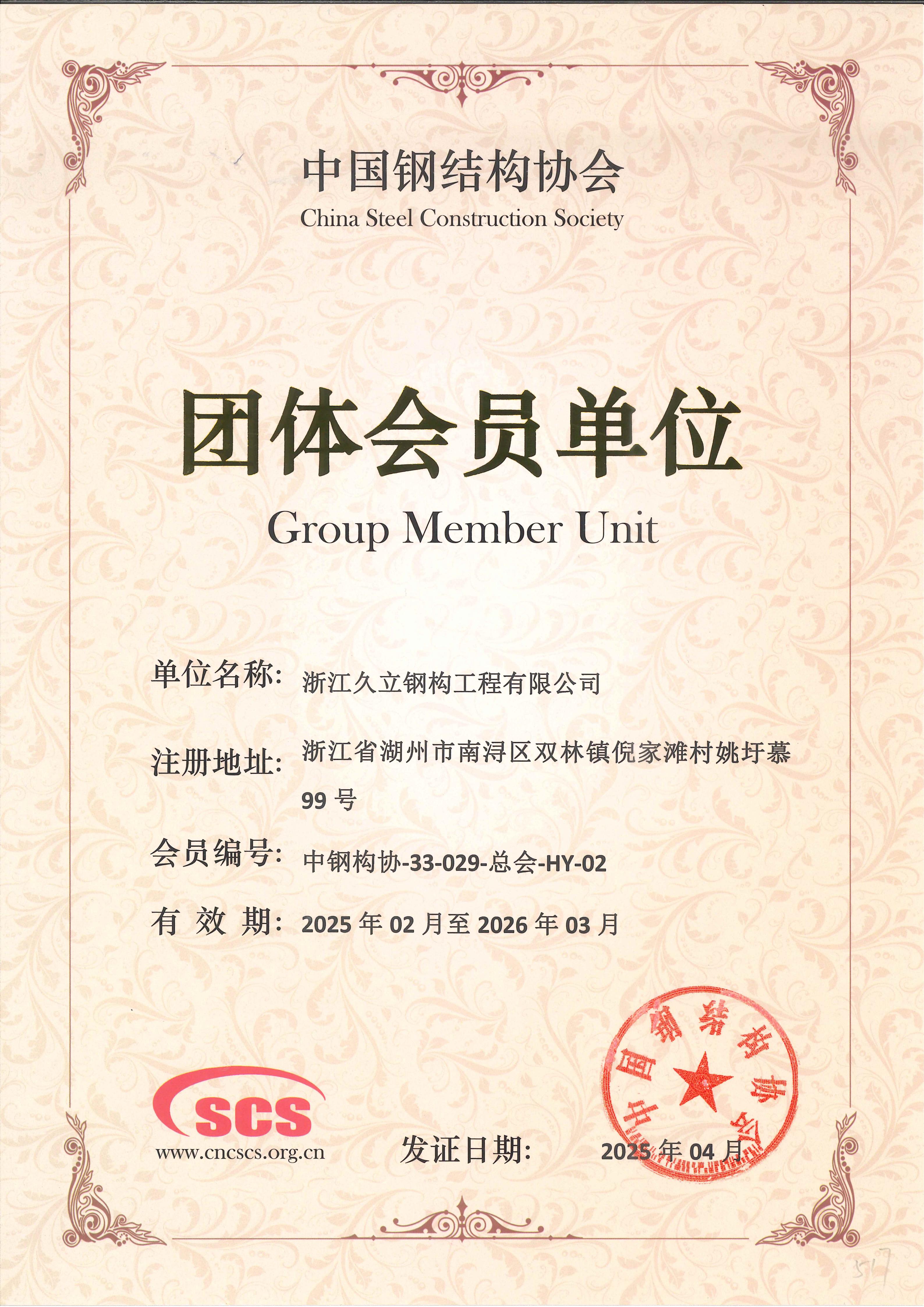 Zhejiang Jiuli Steel Structure Engineering Co., Ltd., founded in February 2001, is based in Huzhou City, the core area of the booming economy of the Yangtze River Delta in China. As a wholly-owned subsidiary of Jiuli Group, our company has not only been awarded honors such as Contract-abiding and Credit-worthy Unit, High-tech Enterprise, and AAA Credit Enterprise in Huzhou City but also holds important memberships in the China Steel Structure Association and the Steel Structure Branch of the Zhejiang Construction Industry Association, demonstrating our authoritative position and outstanding influence in the industry.